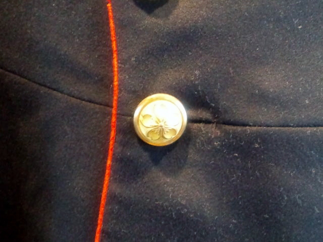 光って見ずらいけどボタンは桜があしらわれています。こうゆう軍関係の物に桜が使われるようになったのはいつからなんでしょうね。