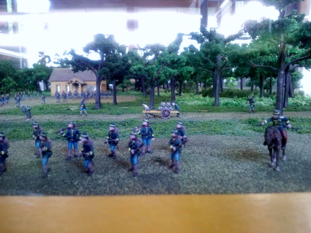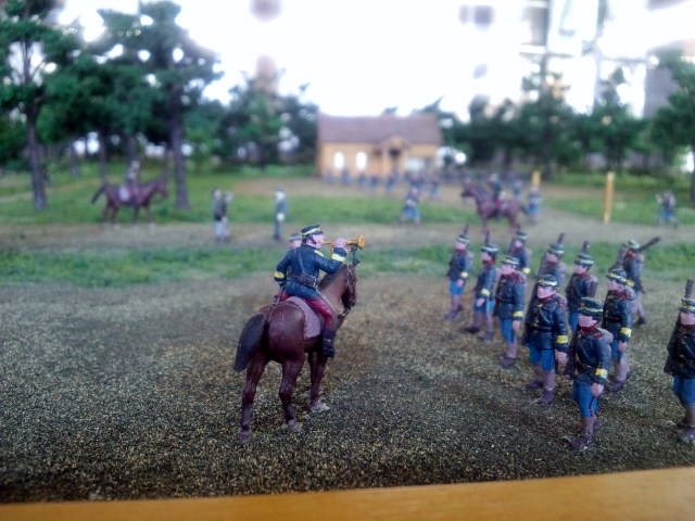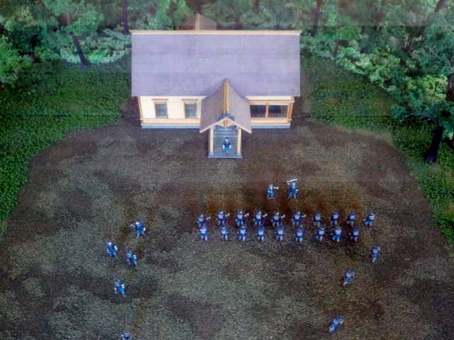 てゆうか門のあたりで走ってる兵隊の慌ててる感じが面白いですね。みんな本部前に整列してるから遅刻ぎりぎりでしょうか。