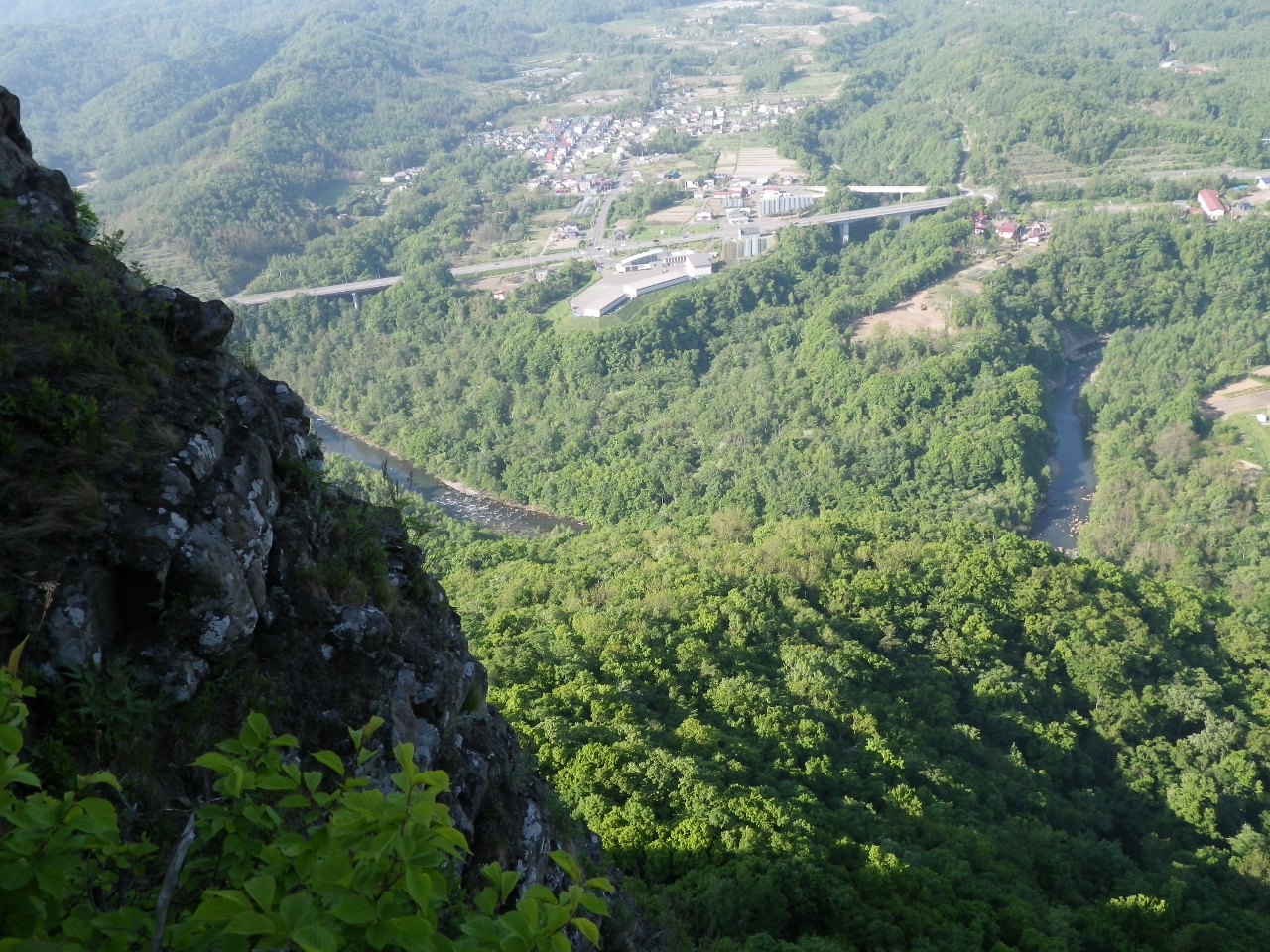 八剣山そのうち木々の向こうに岩山が見えてきます。岩山ってか崖っスね。