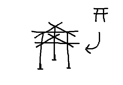 三つの鳥居が背中合わせに合体したような。