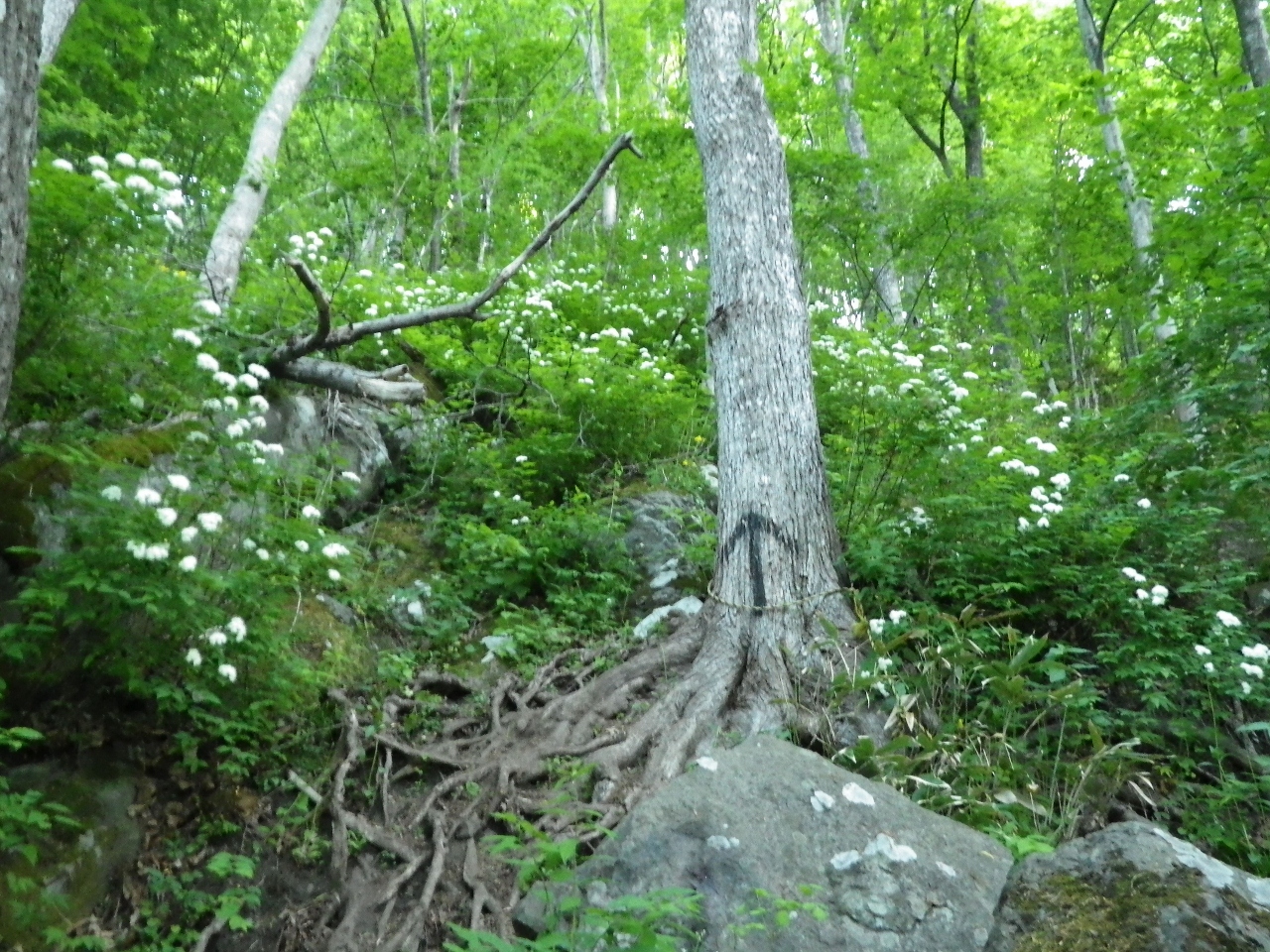 麓は新緑青々とした森。ここらはリアルにヒグマがいるので、ちゃんと鈴を装備しました。ぶっちゃけ鳴り物は気休めですがね。