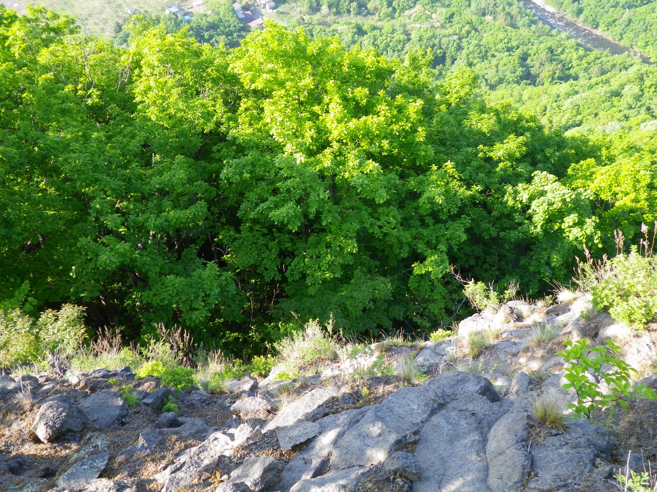八剣山そのうち木々の向こうに岩山が見えてきます。岩山ってか崖っスね。